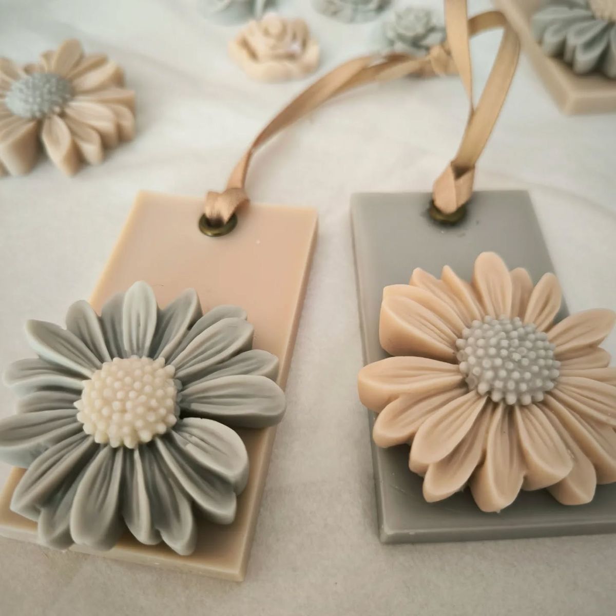 Minimal, elegant, and beautifully handcrafted — the Floral Wax Sachet by Aish Wick & Wax is designed to gently elevate your everyday spaces. Featuring delicate floral wax detailing on a sleek rectangular base, each sachet is finished with a soft ribbon for easy hanging.